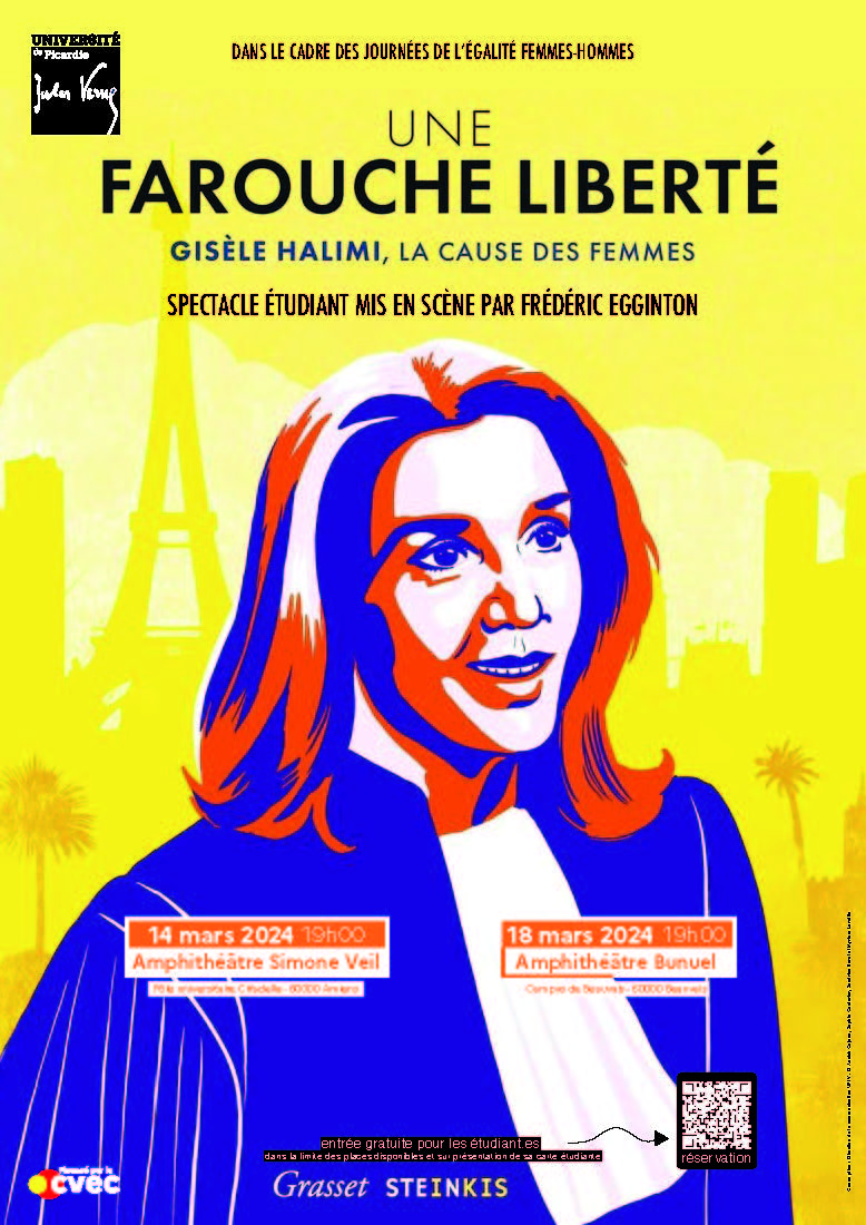 Le spectacle « Une farouche liberté » joué le 14 mars à Amiens investira le Campus universitaire de Beauvais le 18 mars, pour faire connaître le parcours exemplaire de Gisèle Halimi au plus grand nombre.