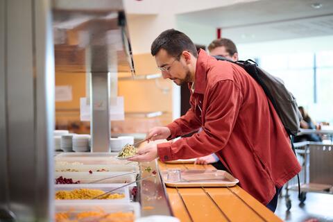 Au resto U, un repas complet (entrée+plat chaud+dessert+pain) vous coûtera 3,30 €. Vous êtes boursier ? Le repas est à 1 € !
